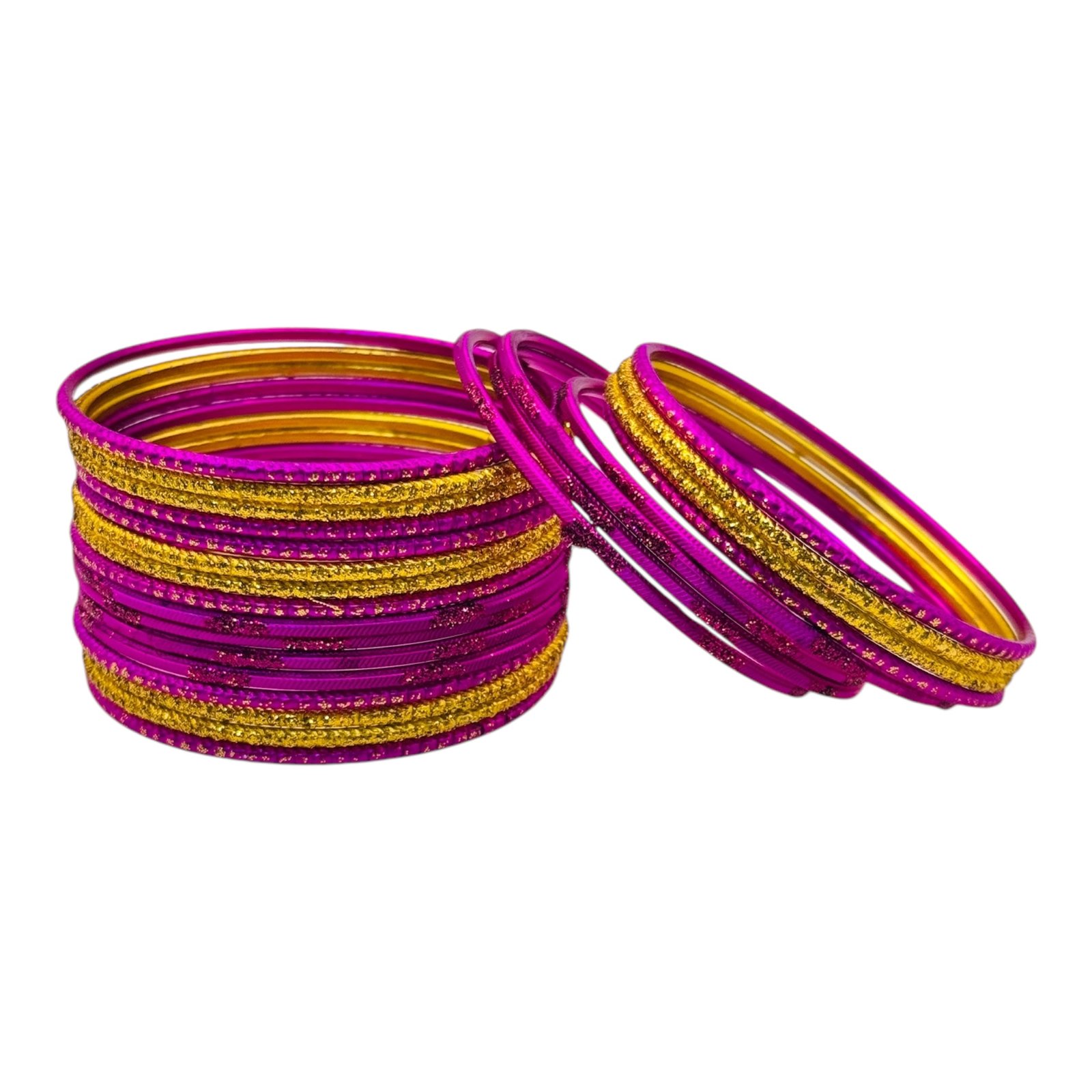 Discover the beauty of Metal Bangles- Dark Pink Color- 24 Bangles Set featuring an elegant shape & patterns. Choose your perfect size from the dropdown menu.