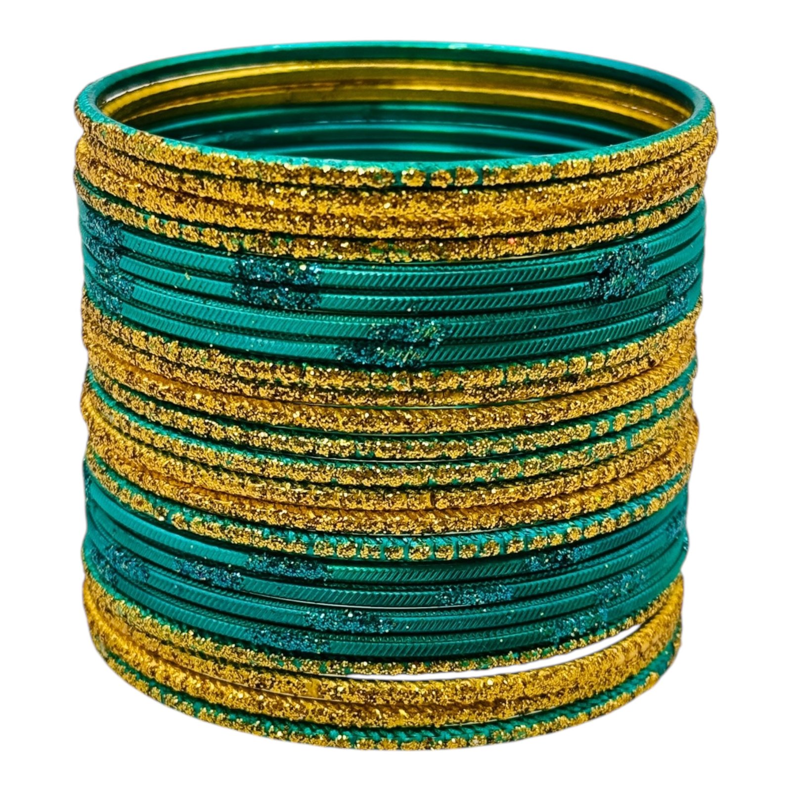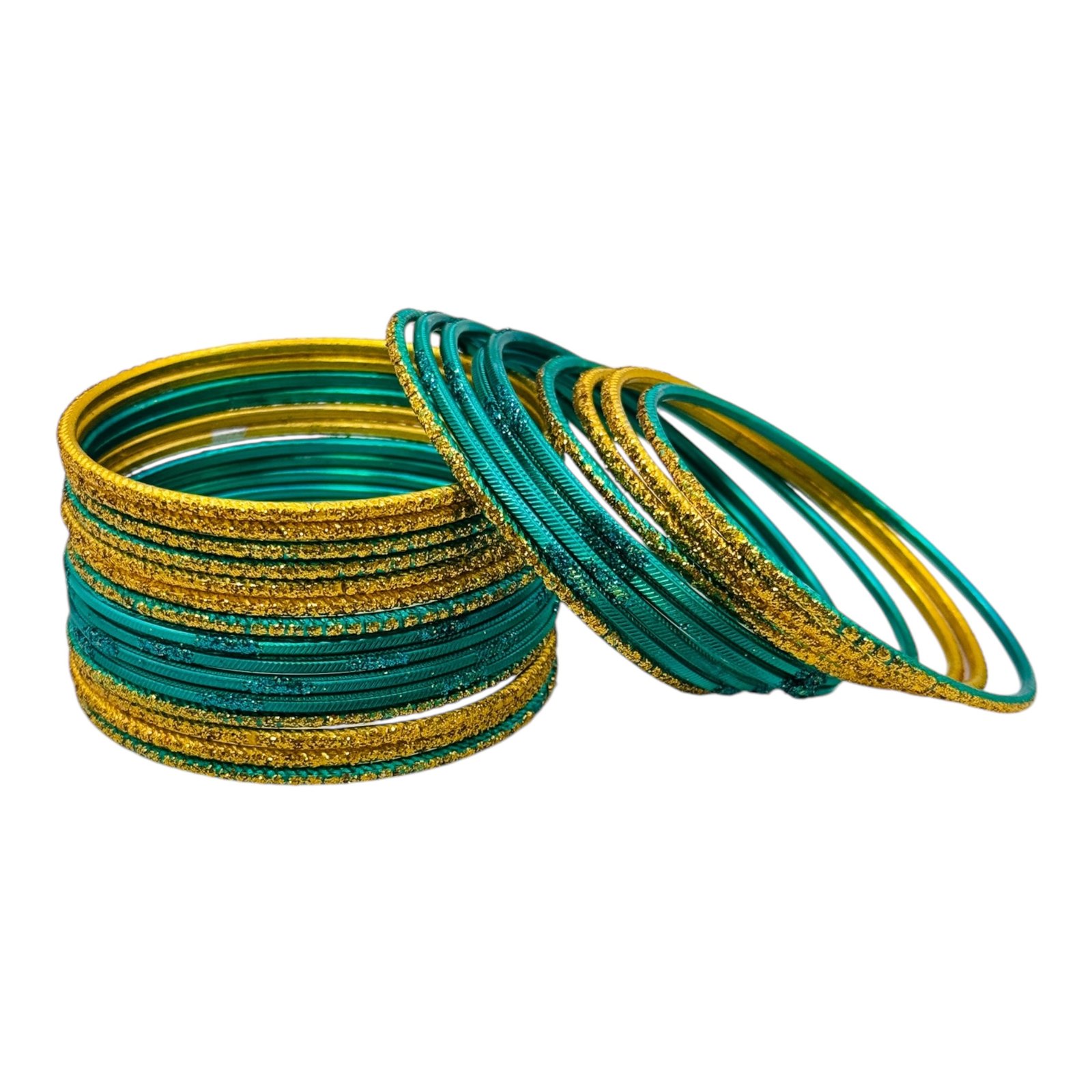 Metal Bangles- Peacock Green Color- 24 Bangles Set, Product Code: V-3143